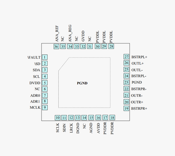 PVDD:4.5V - 16V;-DVDD:3.3V